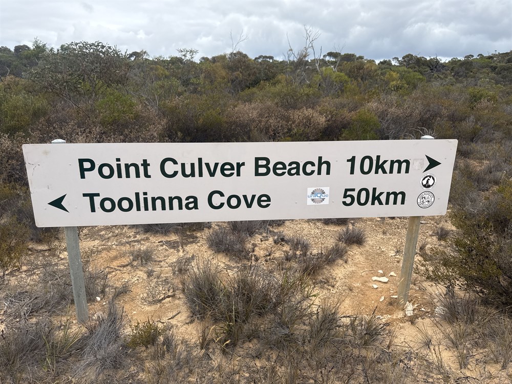 Twilight Cove section of Telegraph Track. Recent advice from DEC is that the track is trafficable but in spite of recent limited pruning is very scratchy and that vehicles larger than a Troopie probably wouldn’t be able to push through. The western end of this section is very hard to find apparently. However, advice from another traveller puts it at 32* 27’ 34” S 125* 31’ 50.5” E adjacent to some old rusted watertanks. By proceeding past the tanks a track can be found but, as it was not explored , proceed with caution.