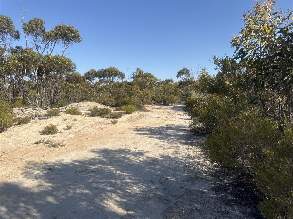 Suitable areas for campsites are scarce at the Ravensthorpe end of the track, because of the thickness and closeness of the scrub. Fire wood is a scarce commodity on the track south of Peak Charles.