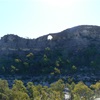 Spyglass Peak leads past a long stone outcrop that looks like a man made rampart with spy holes and arrow slits. The track leads to the base of the peak, where a 10 meter diameter hole can be seen at its summit, you should allow plenty of time to explore around this area.